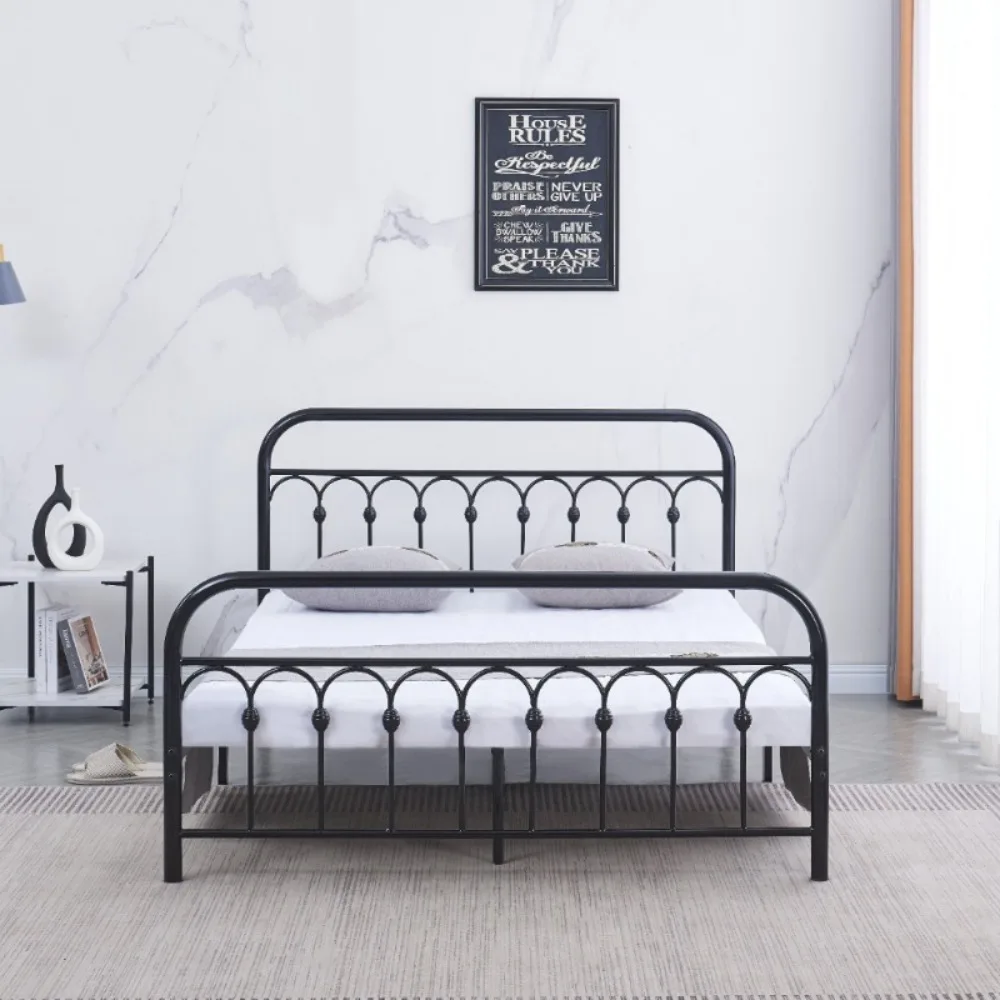 Customized Metal Bed Frame Queen Size with Vintage Headboard Storage Bed Platform Base Iron Bed Frame