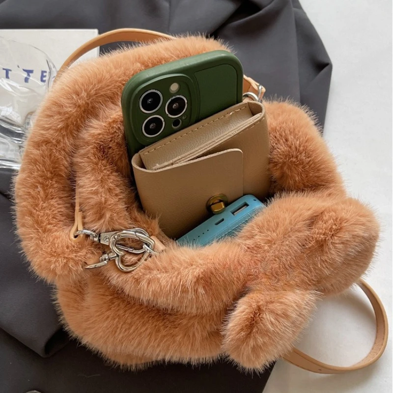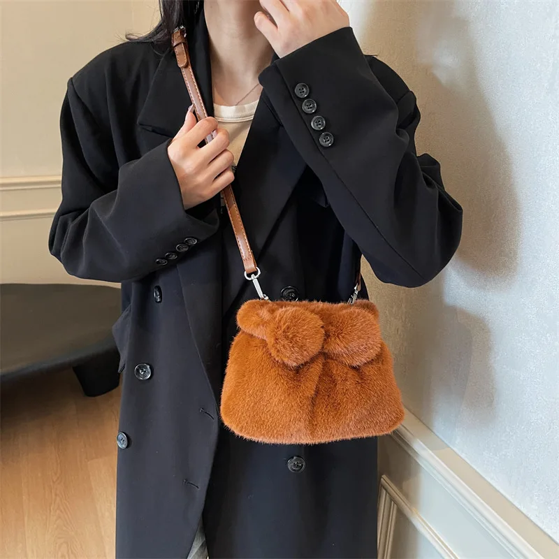 Fashion casual cute personality foreign rabbit bow handbag plush bucket bag niche single shoulder crossbody female bags