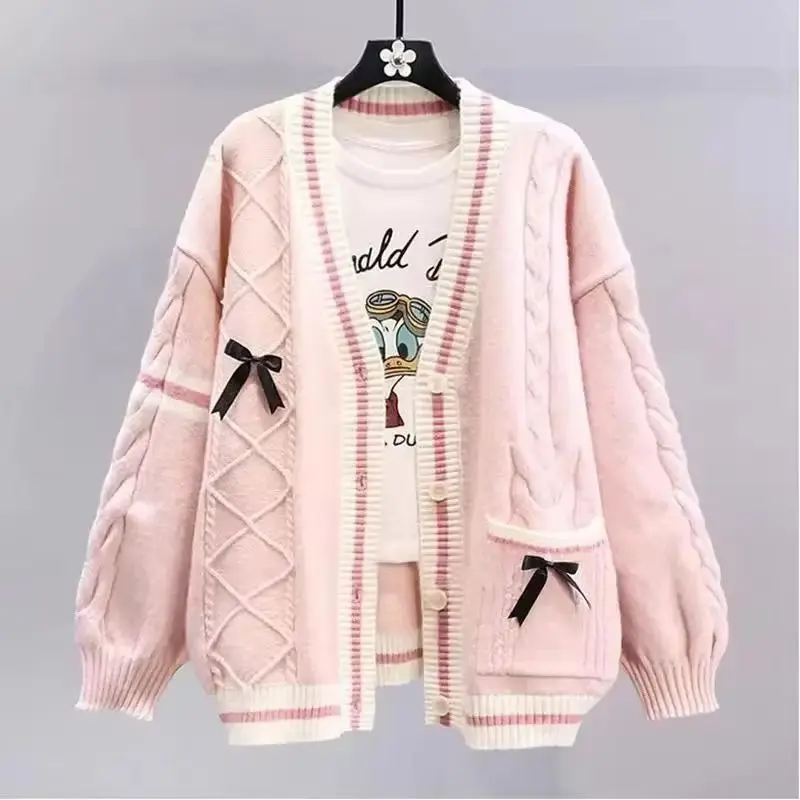 Japanese Bow Sweater Jacket For Women’s Autumn And Winter 2025 New Loose And Lazy Style Design Anti-aging Knitted Cardigan
