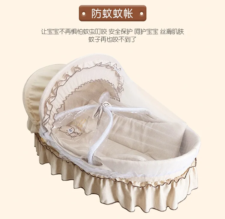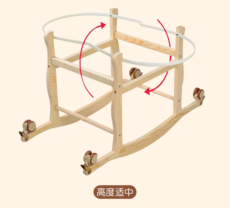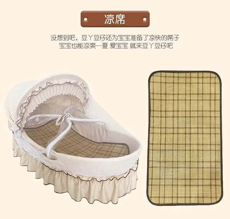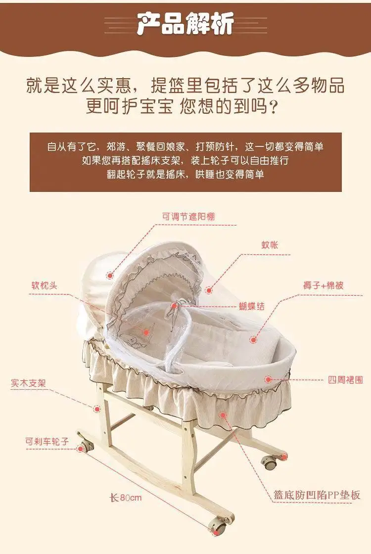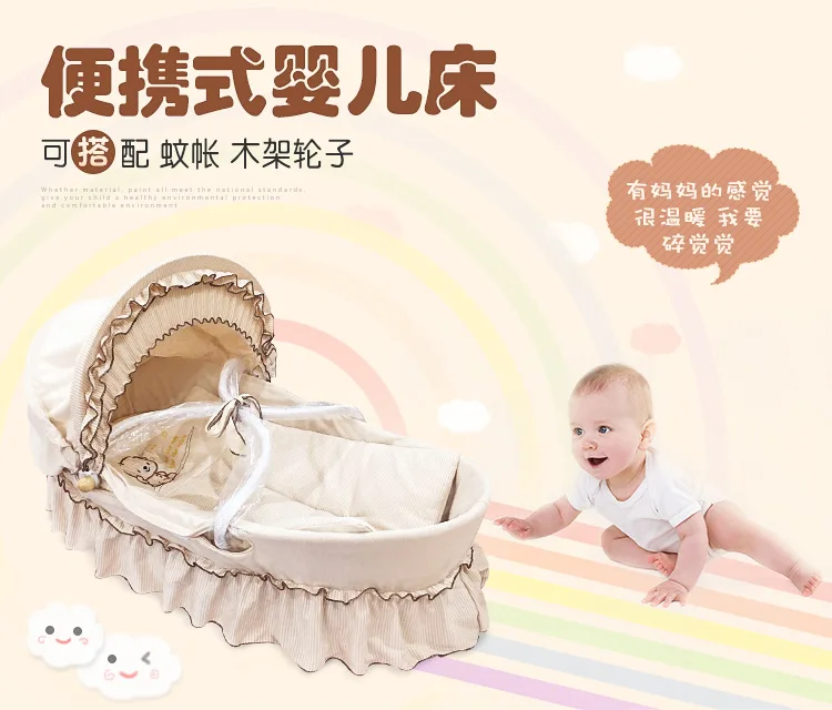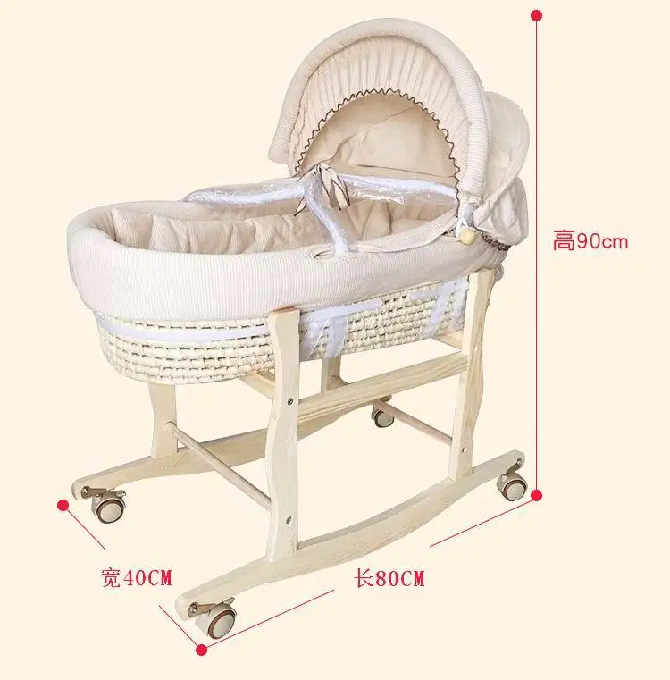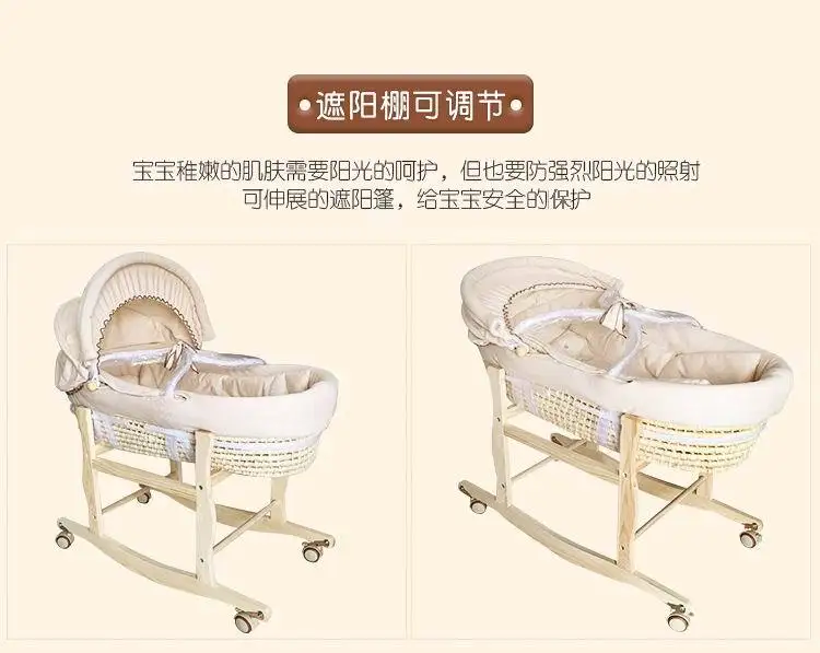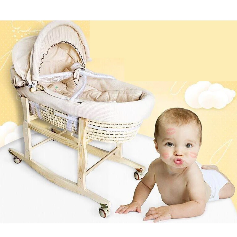 New Portable Sleeping Cradle Bed With Wheel Solid Wood Baby Basket Newborn Crib Baby Stroller For 0-24 Month