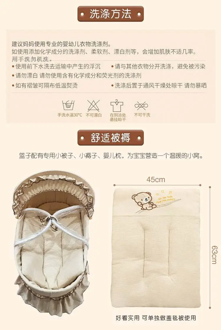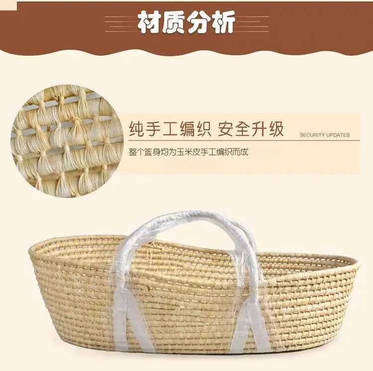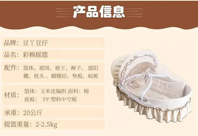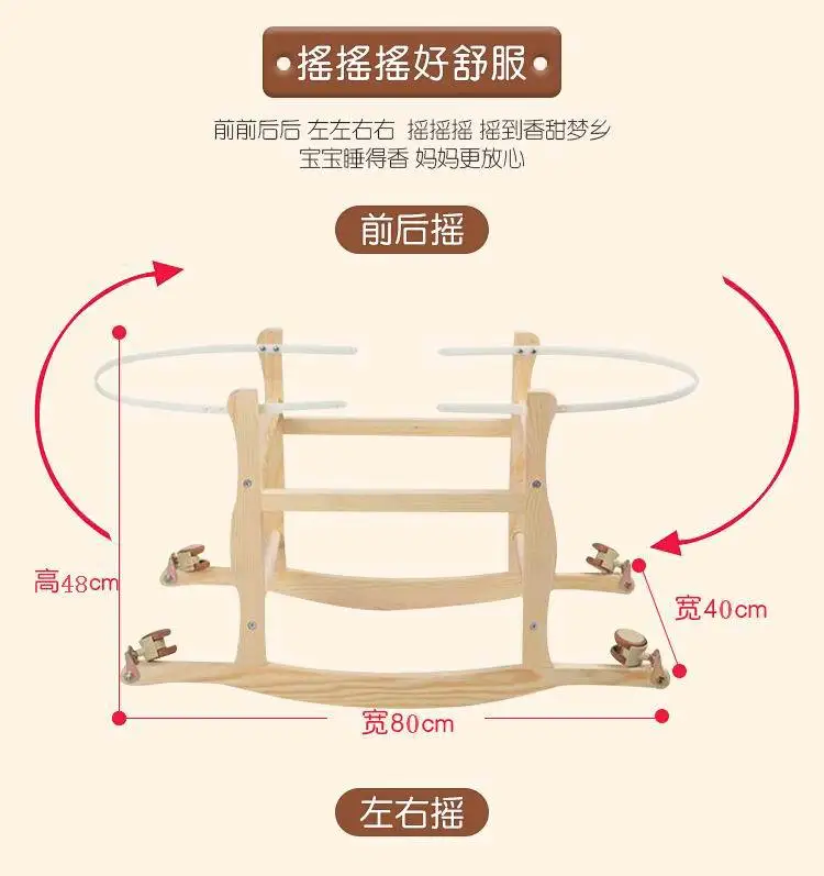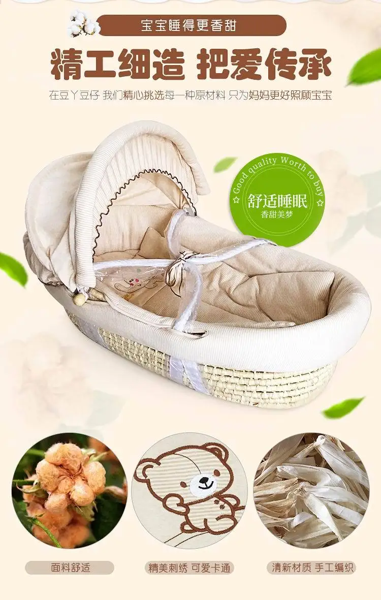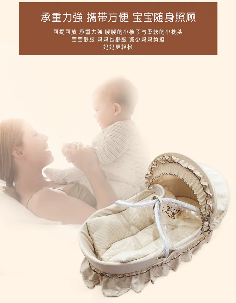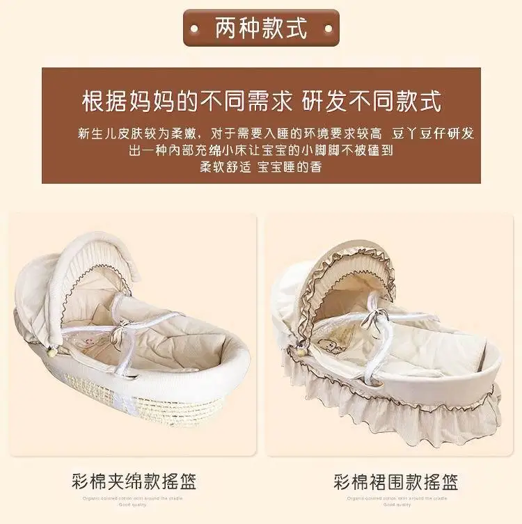 New Portable Sleeping Cradle Bed With Wheel Solid Wood Baby Basket Newborn Crib Baby Stroller For 0-24 Month