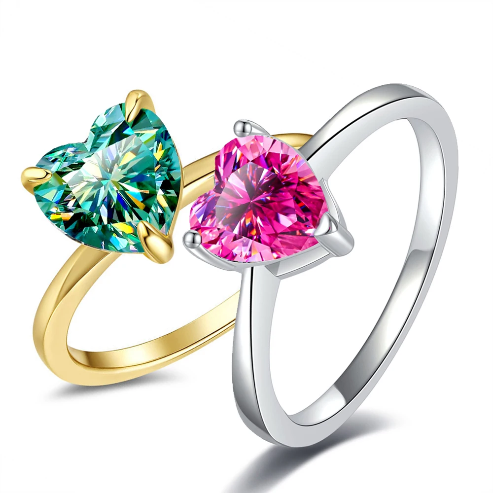 Pink Heart Diamond Ring 1-2ct Shining Moissanite with Certificate 100% Passed Diamond Test S925 Silver Jewelry Ring Gift